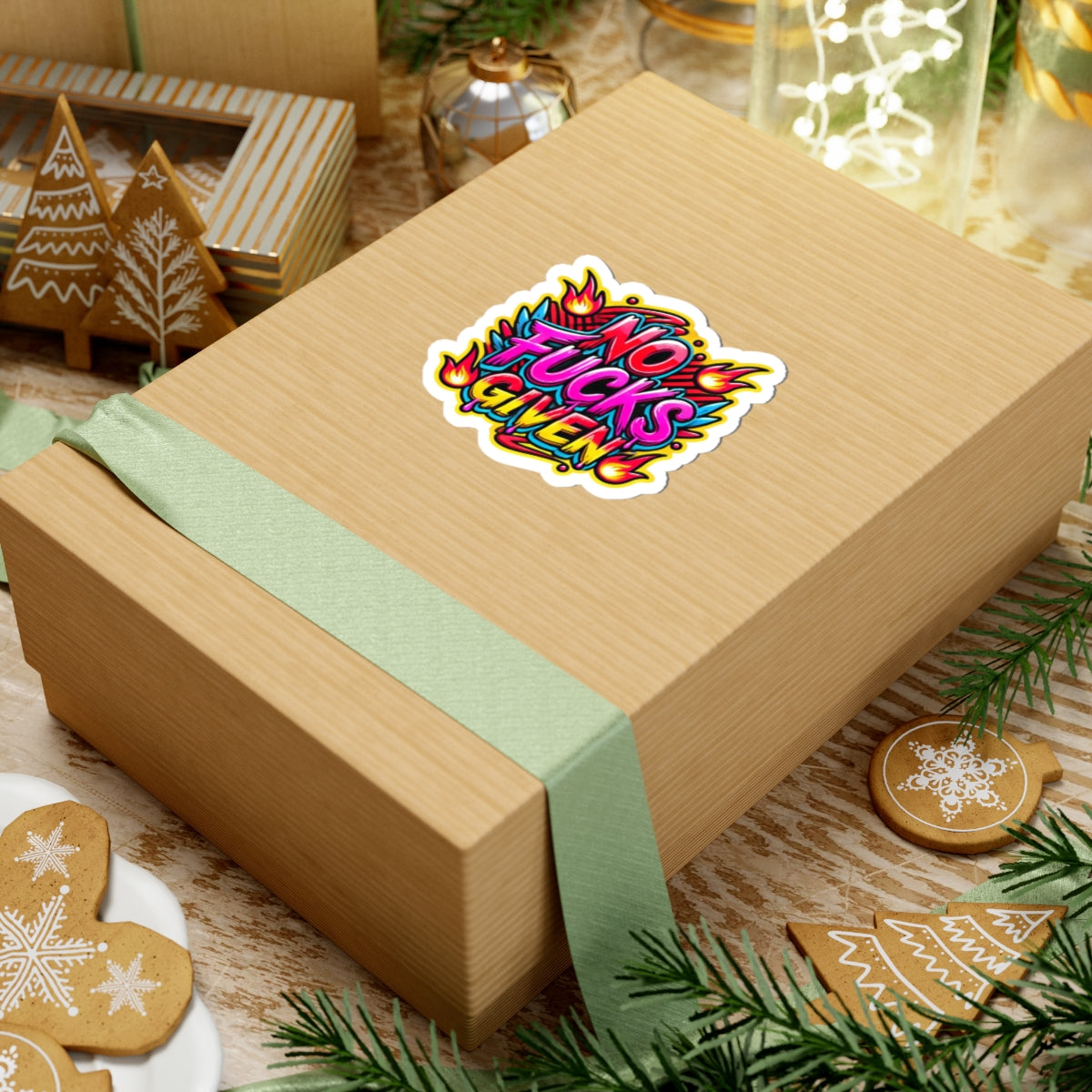 No Fucks Given Kiss-Cut Sticker — Bold Colorful Flame Graphic Laptop Decal